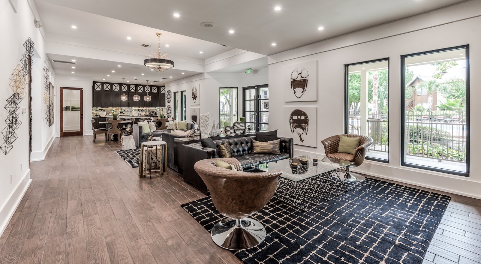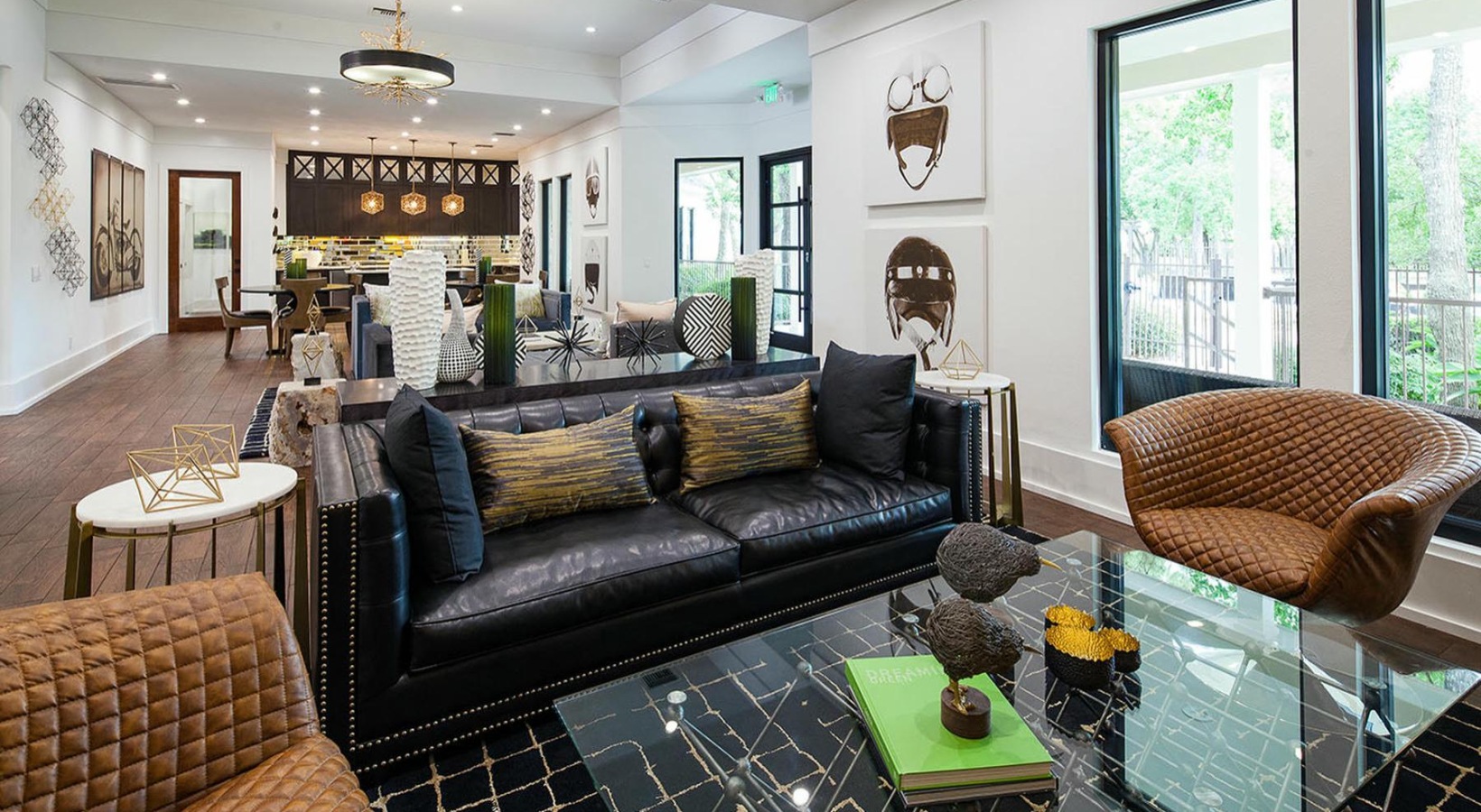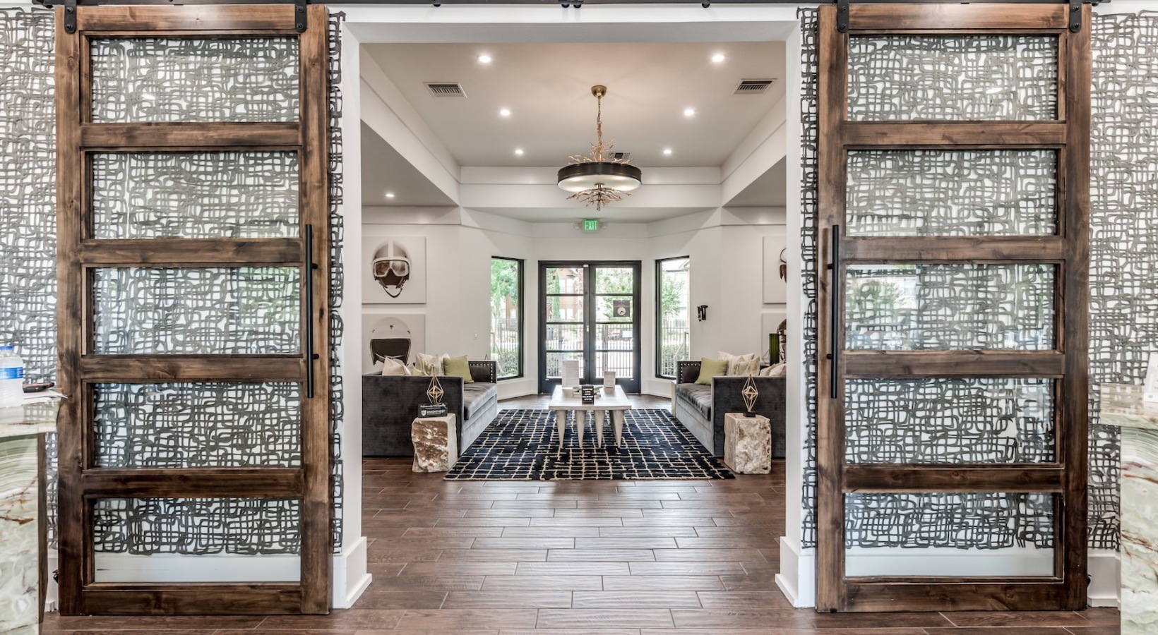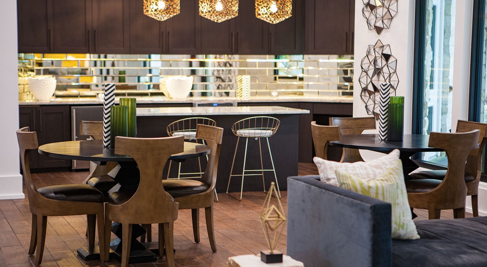 a dining room and kitchen and living room a charcuterie board spread a covered deck with seating a group of people in an office